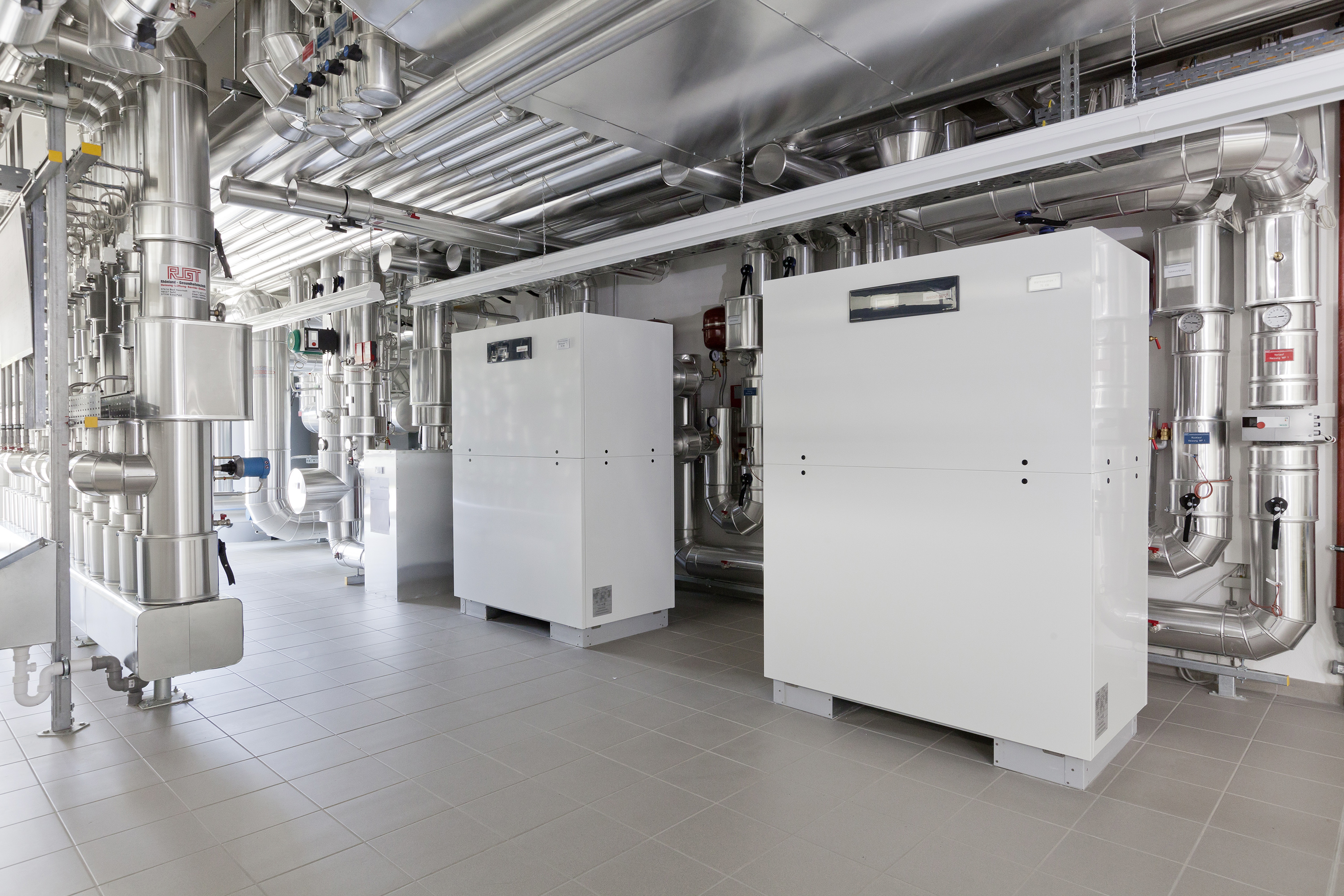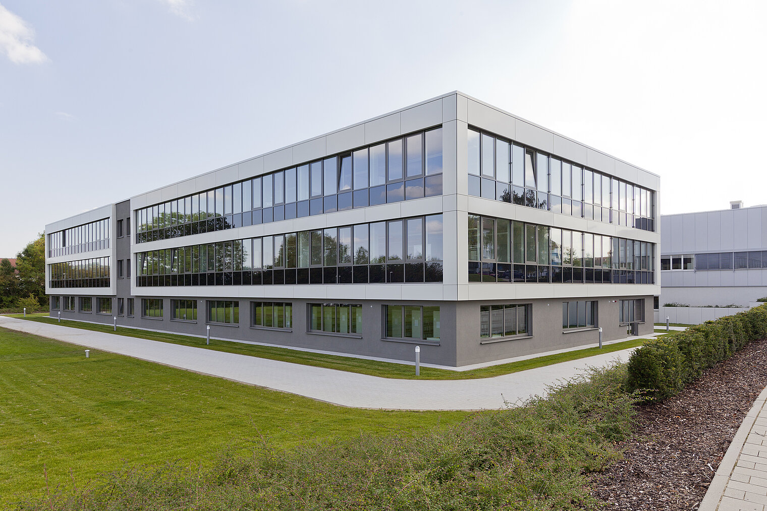 Den nye bygning er opført i et enkelt design, er meget energieffektiv og er udstyret med avanceret teknik. Bygningen opvarmes og køles miljøvenligt og uden CO 2-belastning vha. 40 jordvarmesonder udført af Weishaupts datterselskab BauGrund Süd. Opvarmningen styres af to Weishaupt væske/vand-varmepumper WWP S. Bygningen køles med passiv køling vha. jordsonderne. Det behøver vel næppe at nævnes, at bygningsautomatikken i denne bygning er af den mest avancerede slags, idet Neuberger jo selv udvikler bygningsautomatik.